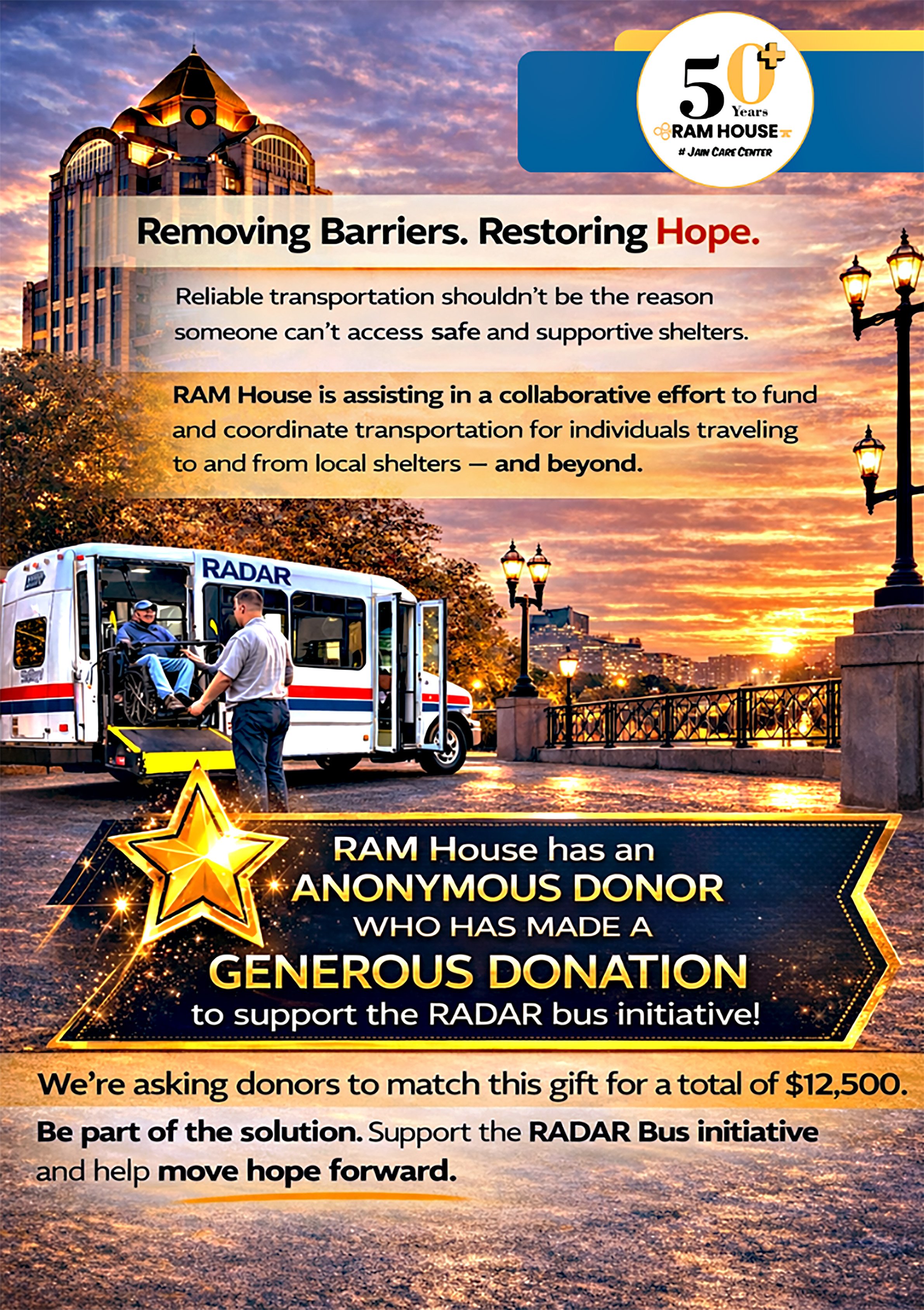 RAM House has an ANONYMOUS DONOR who has made a GENEROUS DONATION of $12,500 to support the RADAR Initiative.